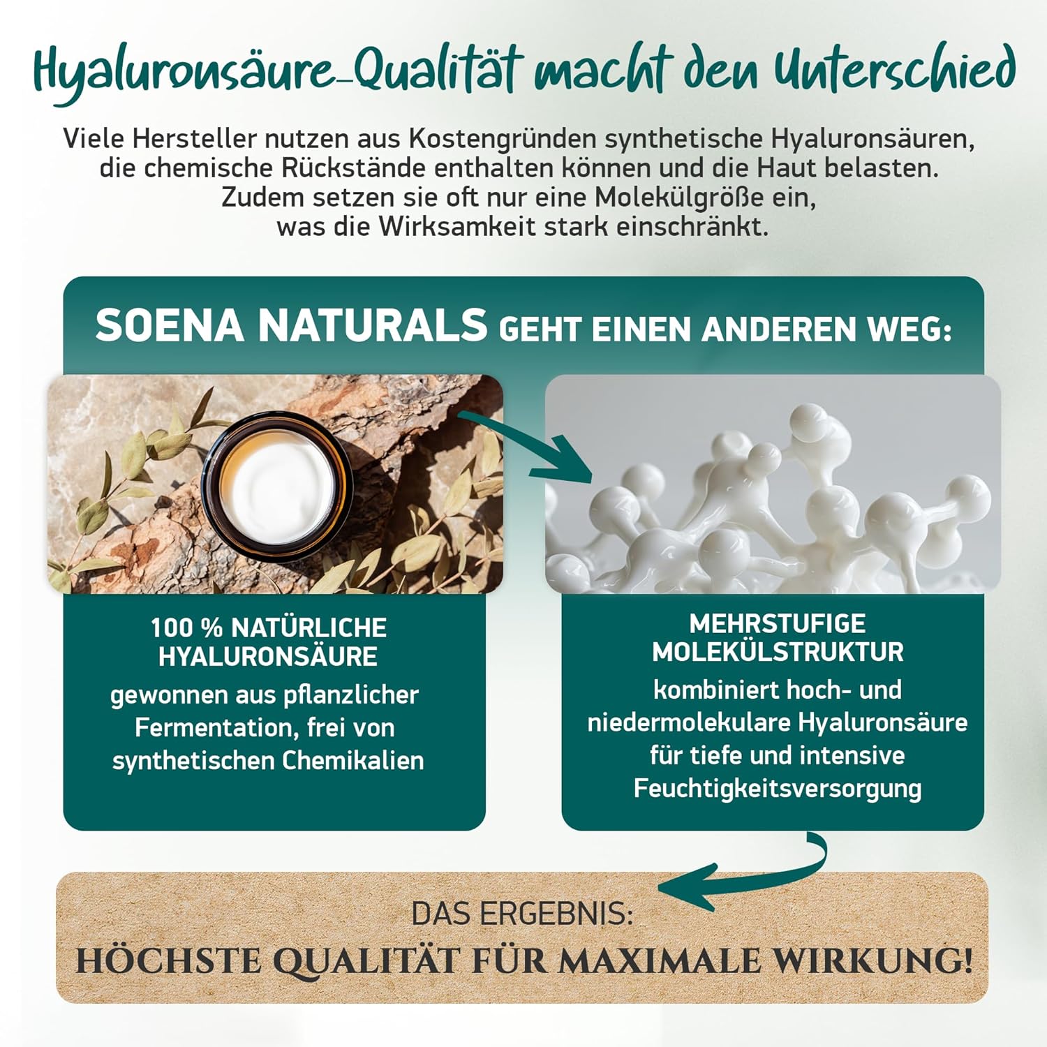 - 4-Fach Anti-Falten Komplex. Hochkonzentrierte nieder- und hochmolekulare Hyaluronsäure + Bio Aloe Vera + Coenzym Q10