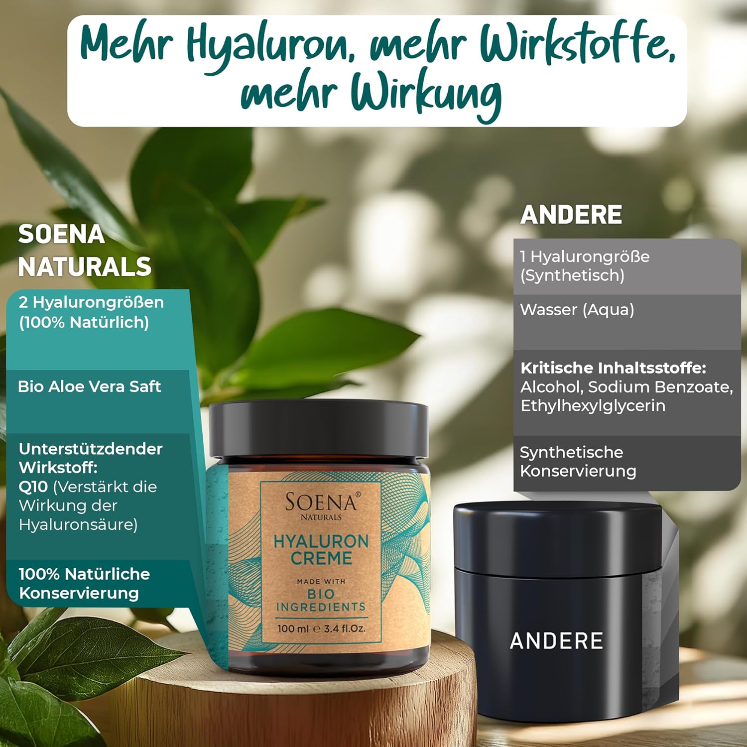- Doppelte Menge. 100ml Bio Hyaluronsäure Feuchtigkeitscreme